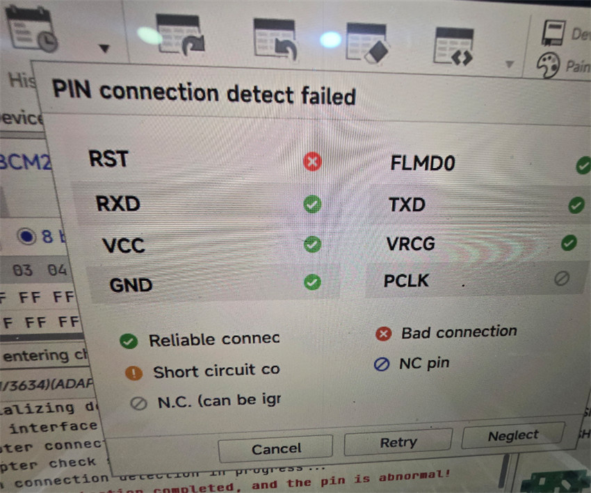 One customer reported that when he used Xhorse Audi BCM2 Adapter V2 to work with Multi Prog, the reset terminal could not be recognized and appeared “PIN Connection Detect Failed” error message.